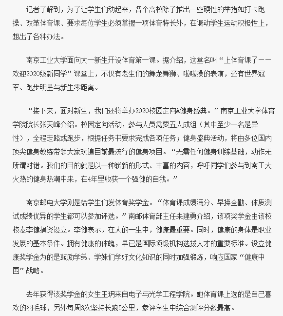 【南京日?qǐng)?bào)】南京高校煞費(fèi)苦心,體育也開(kāi)新生第一課