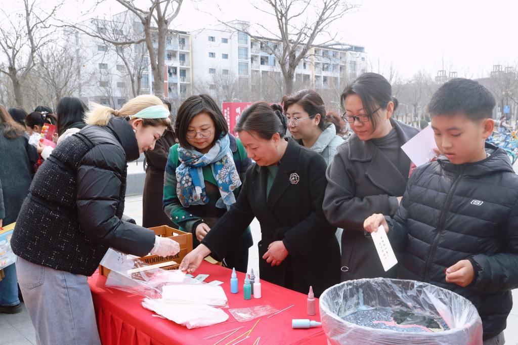 “她的力量?含蘊中華”—藝韻傳承文化體驗活動現(xiàn)場更是熱鬧非凡。五彩的絲線在女職工們靈活的指尖上下翻飛,一個個精美的中國結(jié)應(yīng)運而生,寓意著吉祥如意。在漆書簽制作區(qū)域,女職工們?nèi)褙炞⒌貫闀炆掀帷⒚枥L精美圖案。香囊制作活動區(qū)域,香氣撲鼻,大家親手填充香料,精心縫制香囊,深深感受著傳統(tǒng)民俗的獨特魅力。在糖葫蘆制作區(qū),女職工們親自體驗熬糖、裹糖的流程,臉上綻放出幸福燦爛的笑容。捶丸和投擲乾坤圈的場地充滿了蓬勃的活力,女職工們分組展開激烈競技,在傳統(tǒng)體育項目中盡情感受運動帶來的快樂。