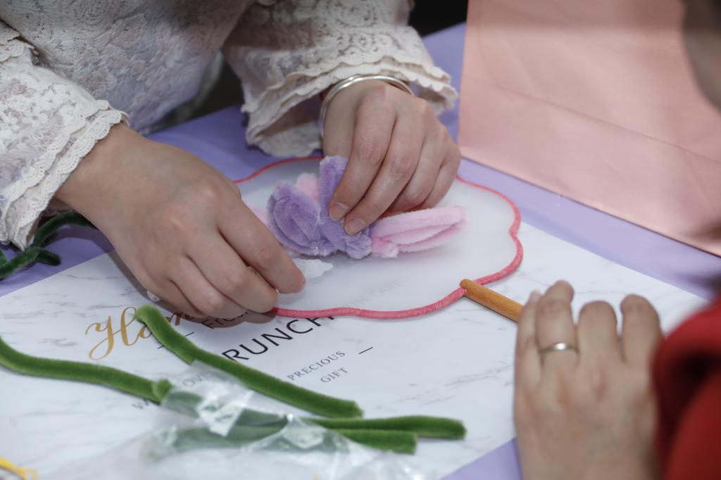 “她的力量?指尖生花”女性減壓賦能沙龍現(xiàn)場溫馨四溢、創(chuàng)意滿滿。女職工們圍坐一團,聚精會神地聆聽老師講授團扇制作的竅門,從扇面的精心繪畫到扇柄的巧妙裝飾,每一個環(huán)節(jié)都力求盡善盡美。在水晶胸針制作區(qū)域,大家興致勃勃地挑選著心儀的水晶配件,用自身獨特的審美眼光,將一顆顆璀璨奪目的水晶巧妙組合成獨一無二的胸針?,F(xiàn)場歡笑聲此起彼伏,女職工們在創(chuàng)作過程中不僅身心得到了舒展、壓力也得以釋放,盡顯女性的心靈手巧。