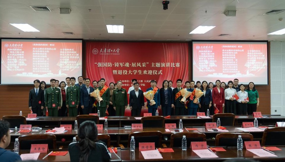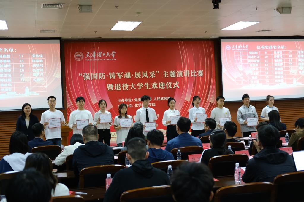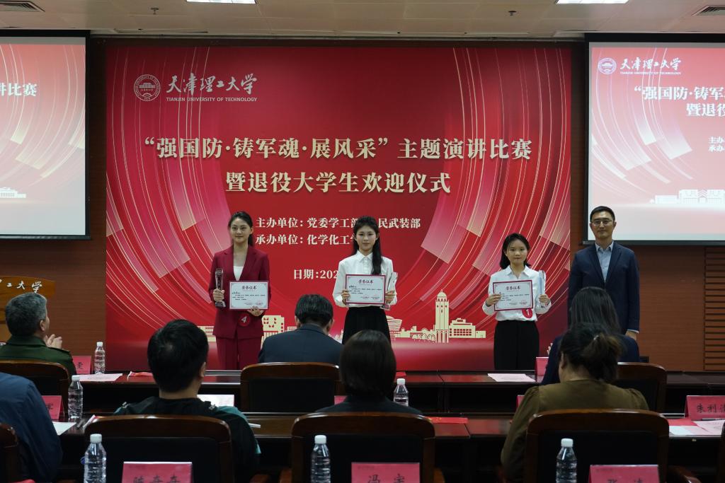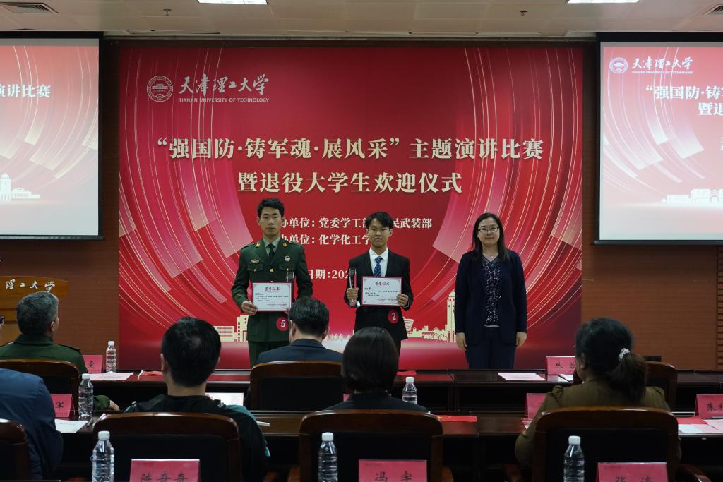 為深入學習貫徹習近平強軍思想,激發學生愛國熱情,4月23日,學校人民武裝部聯合化學化工學院在圖書館多功能廳舉辦“強國防·鑄軍魂·展風采”主題演講比賽暨退役大學生歡迎儀式。南開區人武部政委鄧雯,黨委常委、副校長葉寧出席活動。
