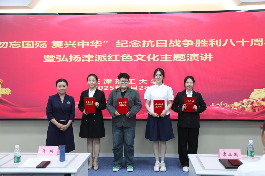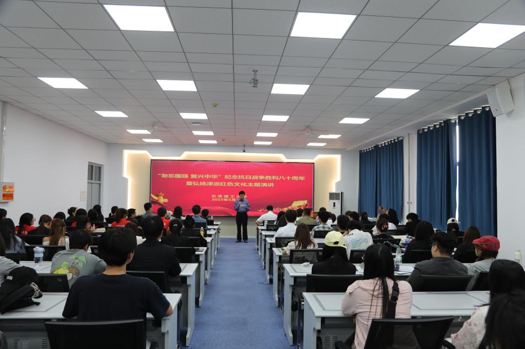 主題演講活動由校團委和馬克思主義學院共同主辦。活動面向全校本學期開設《中國近現代史綱要》課程的33個教學班,旨在對大學生進行愛國主義教育。活動內容突出了“九一八”事變至抗日戰爭勝利期間中國共產黨發揮的中流砥柱作用,展現了在中國共產黨領導下津沽大地涌現出來的典型抗戰事例,進一步弘揚津派紅色文化。復賽共有35組53名同學參加角逐,分別以《津門風骨——抗戰歲月里的精神之光》《蓮花峰上真君子,盤山路里家國情——紀念盤山游擊戰爭》《浴血山河映初心 中流砥柱耀津門》《水樓檐角聽風雷:從津門故里到山河脊梁》《從北大營到平津線——中國共產黨領導下的全民抗戰與津沽壯歌》等題目進行精彩演講,生動講述了中國共產黨人引領津沽大地抗戰的非凡故事,凸顯了中國共產黨在全民族抗戰中的重大貢獻,激發了廣大學生愛黨愛國之情。最終評出一等獎4個、二等獎5個、三等獎7個、優秀獎15個。