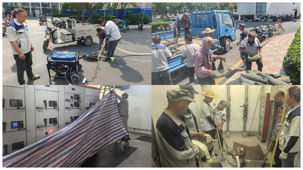 當物業人員巡查時發現地下室突發雨水倒灌現象,應急搶險組立即從遠端切斷電源,避免觸電風險。后勤工作人員迅速搬運防汛擋板、沙袋,在出入口處搭建牢固擋水屏障,同步啟用抽水泵對積水進行抽排。整個環節分工明確、動作迅速,展現了汛期初期險情的快速控制能力。