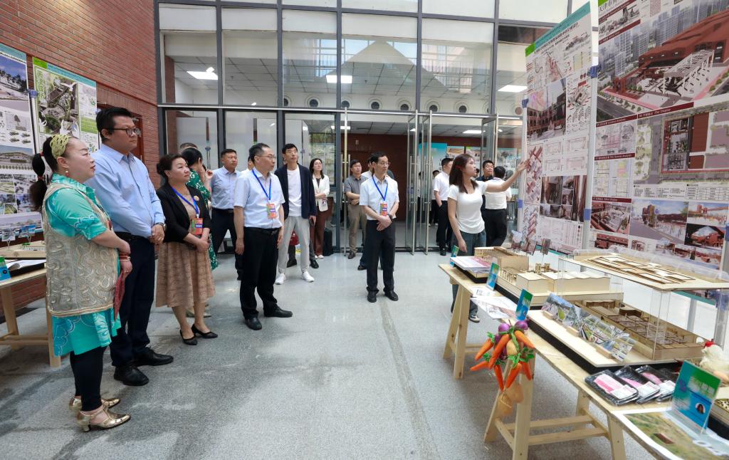 開(kāi)幕式后,校領(lǐng)導(dǎo)練繼建、許瑞、陳勝勇、葉寧、王鐵、馮驊、蘇榮華,以及出席開(kāi)幕式的嘉賓們參觀了畢業(yè)設(shè)計(jì)展。畢業(yè)生們站在各自展位前講解自己的設(shè)計(jì)思路與成果作品,師生們展開(kāi)親切交流。各位老師為學(xué)生作品提出許多寶貴的建議,對(duì)學(xué)院師生的成果表示高度肯定。