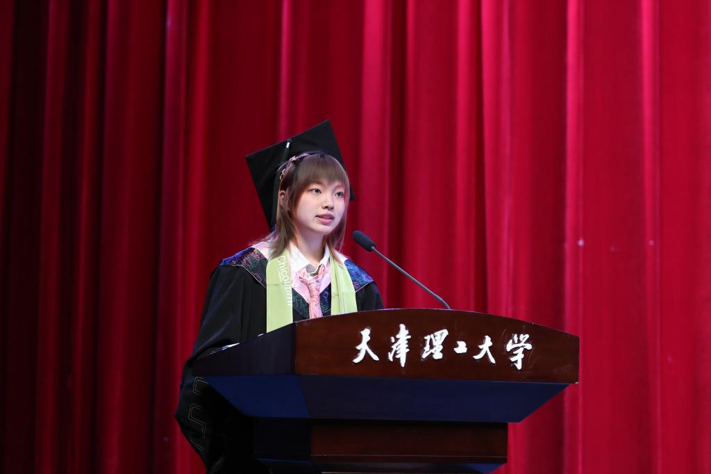教師代表、藝術學院動畫專業教師陳靜怡勉勵畢業生牢記校訓,以堅定的信念和奮斗的姿態迎接人生新階段。畢業生代表、藝術學院2021級動畫專業學生許木子曦表達了對母校培養的感激之情,表示將帶著這份成長與收獲,在未來道路上繼續追求卓越。