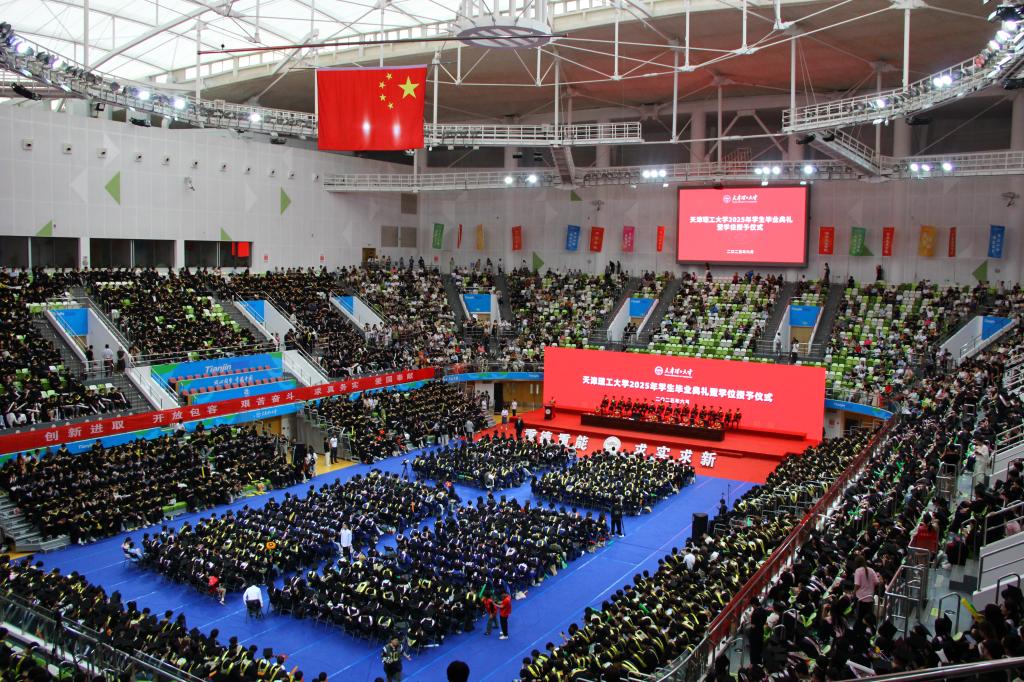 畢業典禮在莊嚴的國歌聲中拉開帷幕。黨委常委、副校長陳勝勇宣讀《天津理工大學學位評定委員會關于授予博士、碩士學位的決定》。黨委常委、副校長葉寧宣讀《天津理工大學學位評定委員會關于授予學士學位的決定》。黨委常委、副校長王鐵宣讀《天津理工大學關于表彰2025屆本科優秀畢業生、優秀退役士兵畢業生的決定》。