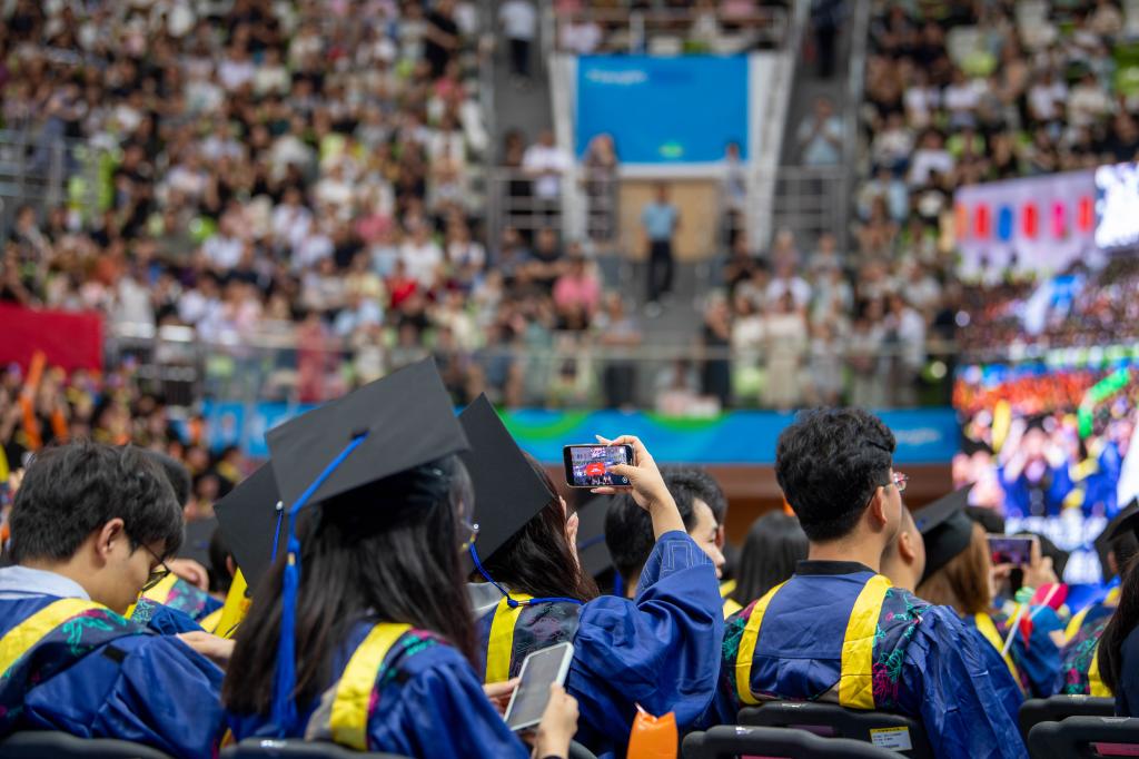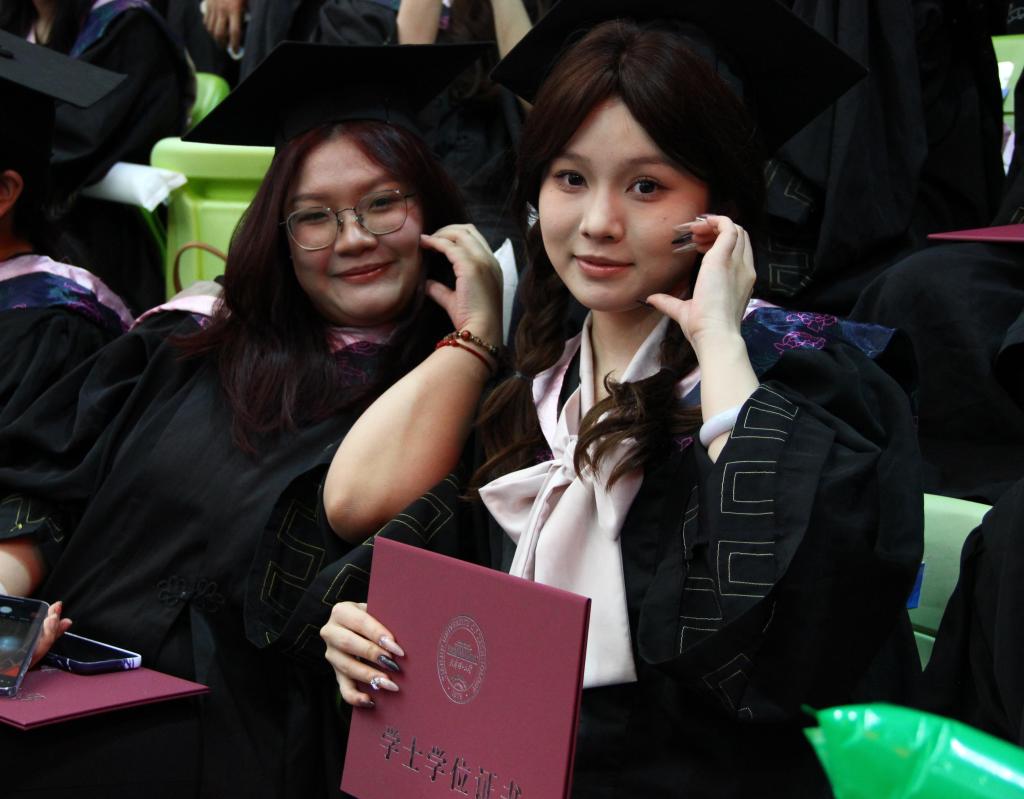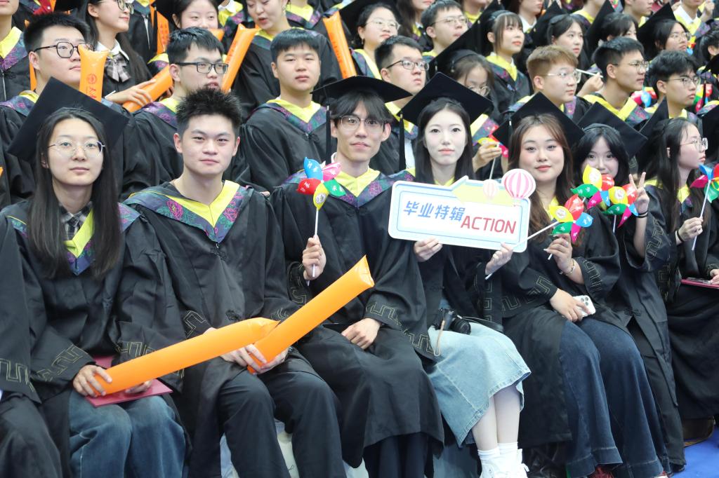 6月19日,學校2025年學生畢業典禮暨學位授予儀式在體育館舉行。校領導練繼建、陳勝勇、王鐵、馮驊以及相關部門、各學院主要負責同志出席,并為獲得學位的畢業生撥正流蘇。畢業典禮由黨委常委、副校長葉寧主持。學校2025屆本科生及研究生畢業生、家長代表、校友代表共計4800余人參加了本次活動。