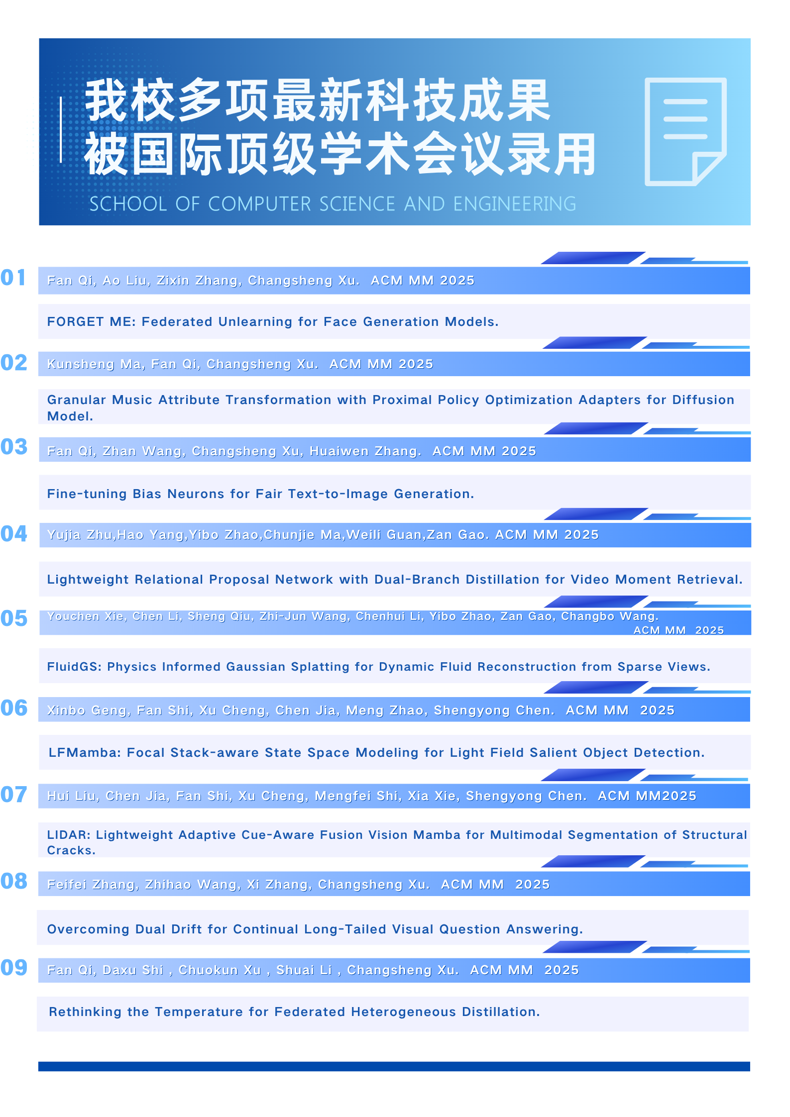 近日,我校計算機科學與工程學院在多媒體技術、計算機視覺與機器學習領域取得重要突破,共有九項研究成果被國際頂級學術會議ACM MM、ICCV和ICML錄用,展現了學校在該前沿科技研究領域的實力。