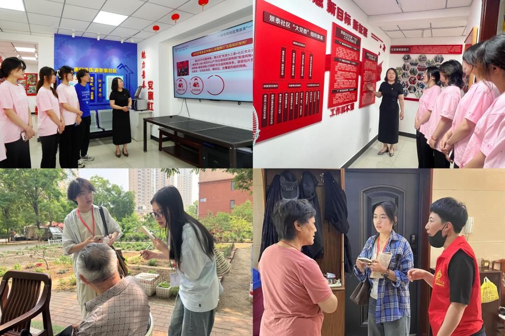 在唐山市景泰社區黨群服務中心,實踐團深入了解社區治理的精細化運作,結合專業特長為社區改造建言獻策。實踐團赴天津市津南區光明樓社區、金華南社區,根據公共空間現狀、居民實際訴求等展開實地調研,圍繞功能優化、文化融入等為社區公共空間提供創意改造方案,形成“專業技能+社區需求”的適配模式,為藝術賦能基層治理提供可借鑒的路徑。