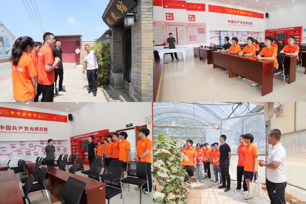 實踐團走進運河文化村落李大人莊村,參觀村史館,傳承紅色基因;走在青龍湖畔,了解高端民宿集群(庭院觀景、親子樂園、大棚采摘)帶動村民就業增收的新型運營模式;在下沉式智能大棚,體驗現代農業技術下的高品質農產品;走進黨建服務中心,了解了“黨建+鄉村旅游”發展模式,體驗了VR智慧黨建平臺,“云體驗”全國各大紅色展館。