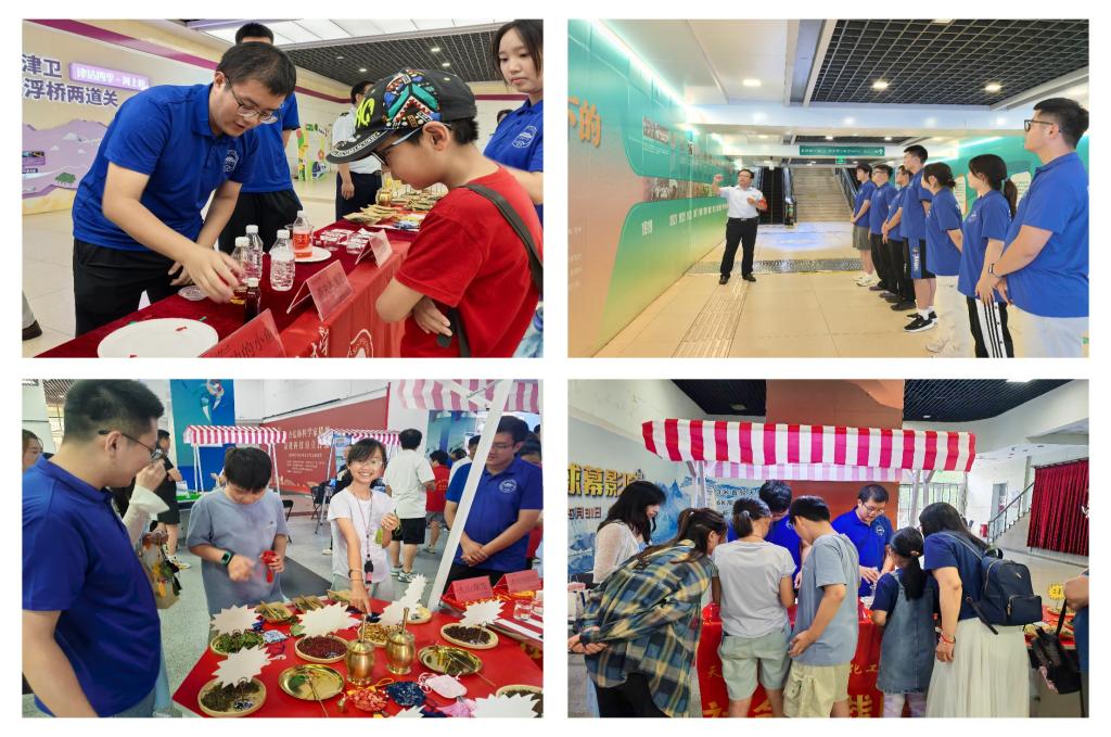 在樂園道地鐵站,志愿者通過講解艾草、薄荷等藥材成分與化學原理,引得觀眾駐足觀看;通過“消失的顏色”等趣味實驗,將氧化還原反應化作直觀現象,讓乘客在驚奇中感受化學魅力。實踐團同步開展的站臺服務,讓更多青春力量融入公共服務。天津科技館內科學家精神宣講、趣味化學實驗與驅蚊香囊制作組成的“科普三重奏”,讓科學精神與東方智慧在互動中傳遞。