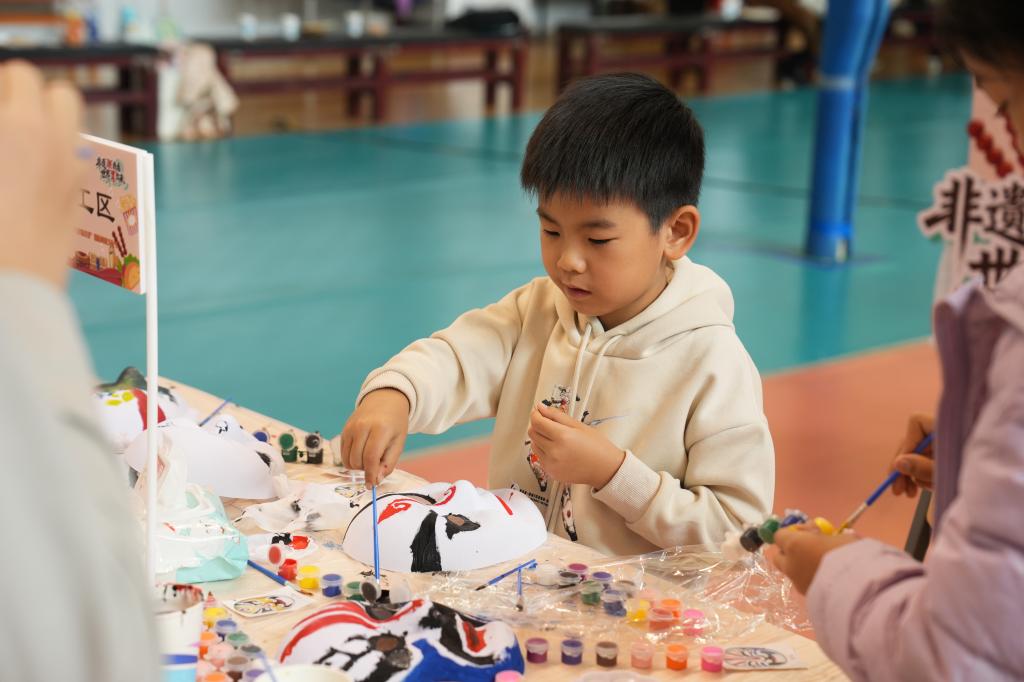 在國(guó)際美食攤位與非遺文化體驗(yàn)區(qū),來(lái)自俄羅斯、塔吉克斯坦、秘魯、馬來(lái)西亞等8個(gè)國(guó)家的留學(xué)生準(zhǔn)備了各具特色的家鄉(xiāng)美食,讓師生和孩子們不出校門便能品嘗“世界味道”。充滿中國(guó)韻味的京劇臉譜繪畫、典雅精致的漆扇制作、巧思妙構(gòu)的竹編風(fēng)鈴等非遺體驗(yàn)項(xiàng)目,也吸引了大量小朋友動(dòng)手參與。活動(dòng)還設(shè)置了拍照打卡區(qū),現(xiàn)場(chǎng)人員沉浸式感受中華優(yōu)秀傳統(tǒng)文化的獨(dú)特魅力和異域風(fēng)情。