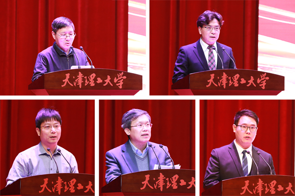 馬克思主義學院院長馬用浩、管理學院院長王京濱、新能源材料與低碳技術研究院院長丁軼、研究生院院長王勁松、電氣電子工程學院研究生曹晟分別代表研究生培養單位、研究生教育管理職能部門和在校研究生上臺交流發言。