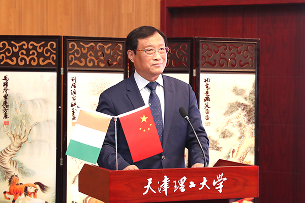 天津理工大學黨委書記劉東志、校長楊慶新,亞穆蘇克羅國立博瓦尼理工學院校長柯菲·恩蓋桑(KOFFI N'Guessan)、副校長桑加黑·穆斯塔法(SANGARéMoustapha)通過互聯網同步為科特迪瓦魯班工坊揭牌。作為天津首家由普通高校參與建設的魯班工坊,它的揭牌標志著魯班工坊建設達到了一個新高度。