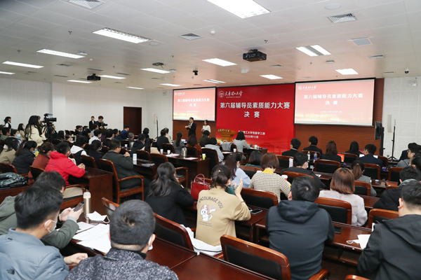 經(jīng)過初賽“基礎知識測試”、復賽“案例研討”兩個環(huán)節(jié)的比賽,最終來自8個學院的12名輔導員入圍決賽。11月28日,決賽在圖書館多功能報告廳順利舉行。校黨委副書記杜長有出席,5所兄弟高校黨委學工部部長受邀擔任大賽評委,黨委學工部、團委相關(guān)負責同志、各學院輔導員、學生代表120余人觀摩了本次大賽。