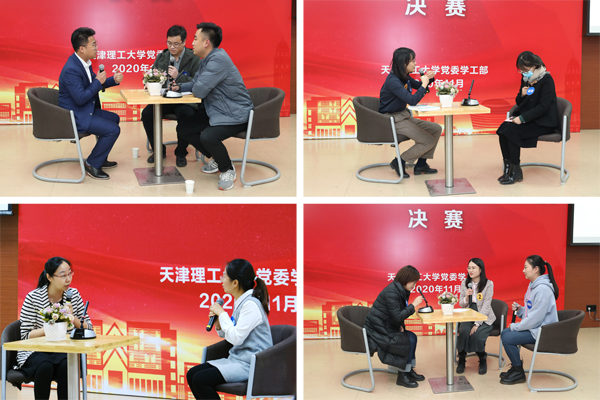 在談心談話環(huán)節(jié),參賽輔導員們和助演分別圍繞“四史學習”“疫情防控”“學業(yè)壓力”“網(wǎng)紅學生”“貧困學生”“電信詐騙”“就業(yè)創(chuàng)業(yè)”“黨員發(fā)展”“思想教育”“宿舍管理”“心理健康”等主題,進行“面對面”的互動交流。選手們巧妙應對,體現(xiàn)了對馬克思主義理論、思想政治教育及相關(guān)學科知識的掌握。