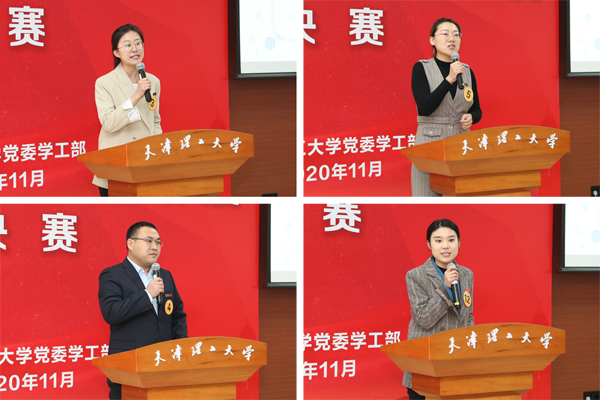 經(jīng)過緊張激烈的角逐,計算機科學與工程學院尚以迪獲得一等獎;理學院陳尚尚、環(huán)境科學與安全工程學院萬柯彤、語言文化學院郭健獲得二等獎;電氣電子工程學院馬曉鈺、機械工程學院李君、電氣電子工程學院李延超、管理學院邱虹及肖悅獲得三等獎。另外,本場決賽“談心談話”最佳男、女助演獎項分別由材料科學與工程學院輔導員王悅陽、藝術(shù)學院輔導員王伊璞獲得。大賽評委為獲獎輔導員頒發(fā)了榮譽證書。