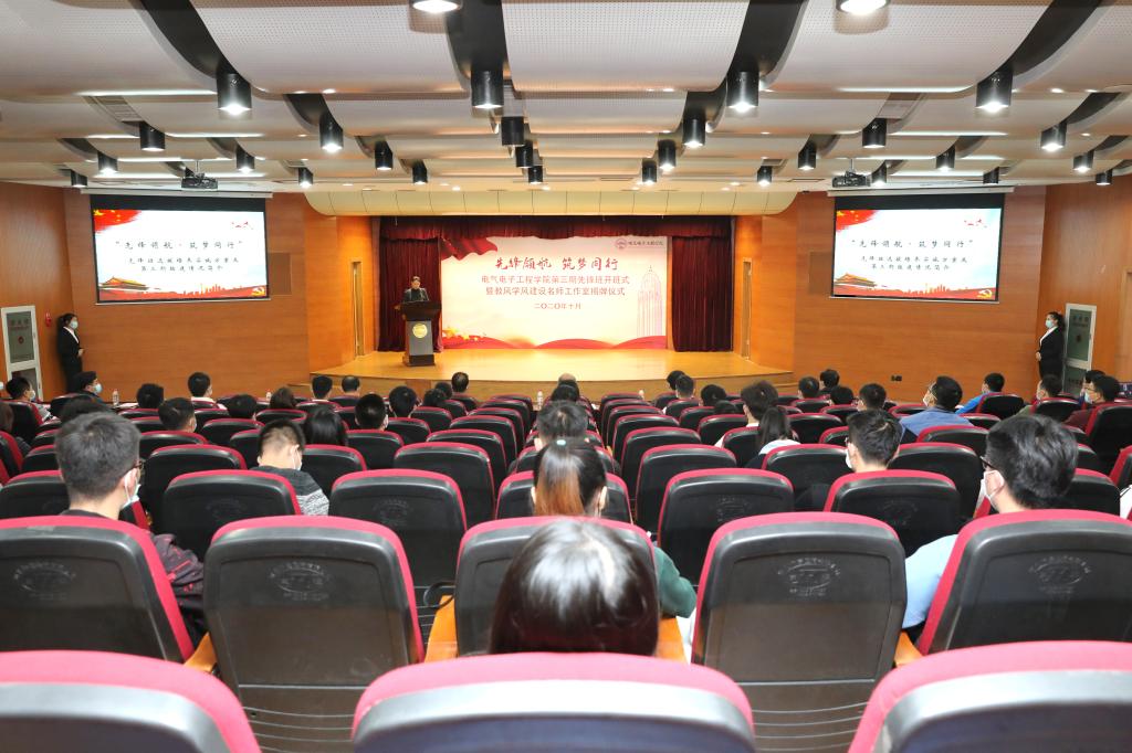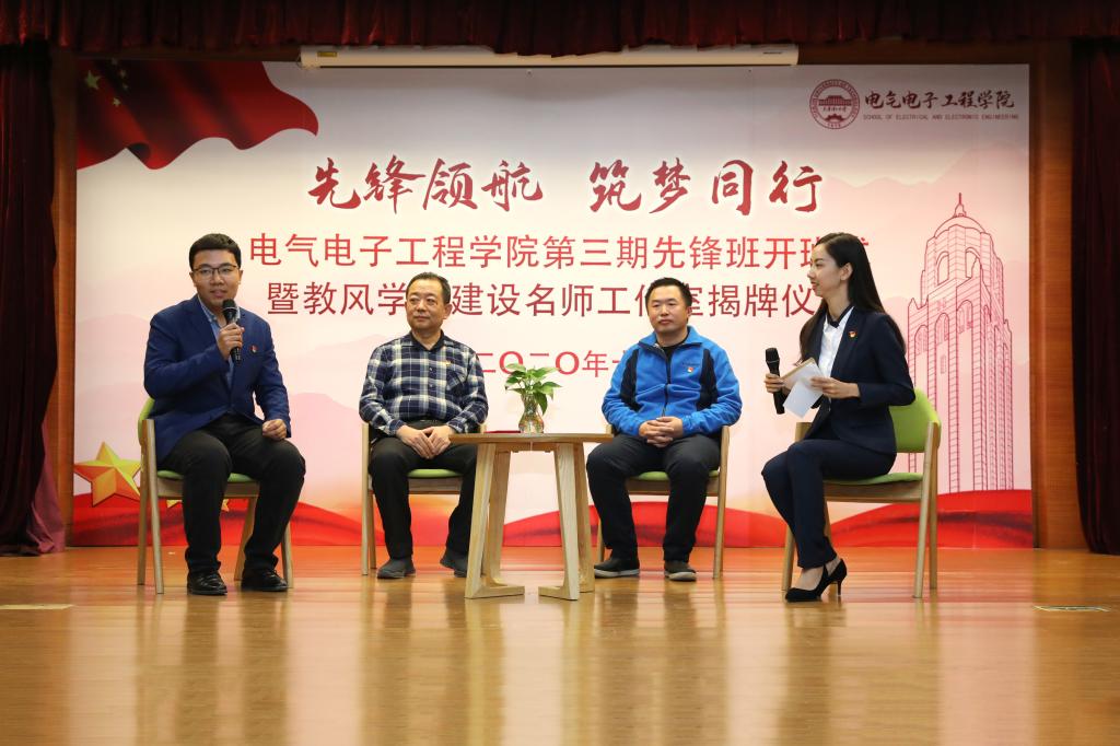為深入學習領會習近平新時代中國特色社會主義思想和習近平總書記關于教育的重要論述,堅持以優良黨風帶教風端學風,全面推動落實“教風學風建設年”活動,10月21日,電氣電子工程院舉辦“先鋒領航·筑夢同行”第三期先鋒班開班式暨教風學風建設名師工作室揭牌儀式。校長楊慶新出席,學院黨政領導及師生代表參加。