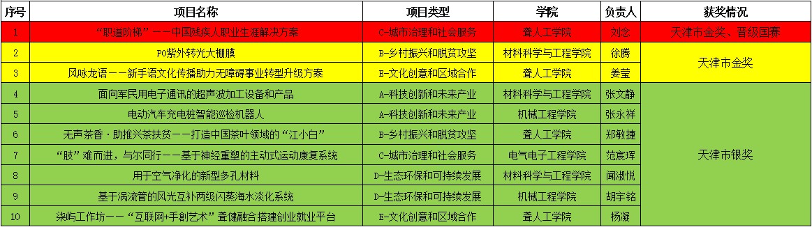 近日,由團市委、市委教育工委、市科技局、市教委、市人社局、市科協市學聯共同舉辦的2020年“挑戰杯”天津市大學生創業計劃競賽決賽落下帷幕。我校共推薦10支參賽隊伍,并全部晉級天津市終審決賽。經過大賽組委會專家評委的嚴格評選,我校共有三支隊伍榮獲“挑戰杯”天津市大學生創業計劃競賽金獎,其余七支隊伍均榮獲銀獎。其中,“‘職道階梯’——中國殘疾人職業生涯解決方案”項目晉級全國總決賽。