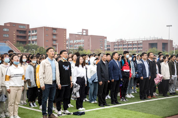 校黨委副書記杜長有在講話中從歷史和全局的高度講述了新中國成立以來中國共產黨團結帶領全國各族人民歷經艱難險阻,取得的舉世矚目的輝煌成就。他希望同學們要厚植愛國主義情懷,做中國精神的傳承者和實踐者;要滋養初心、引領使命,做新時代的追夢人和圓夢人;要躬行實踐,做與時代同步伐的奮斗者和實干者。他要求同學們弘揚校訓精神,以德能為本,以實新為范,重德重能做人,求實求新干事,在校園生活中品讀天理之美,增長智慧才干,做德智體美勞全面發展的社會主義建設者和接班人。