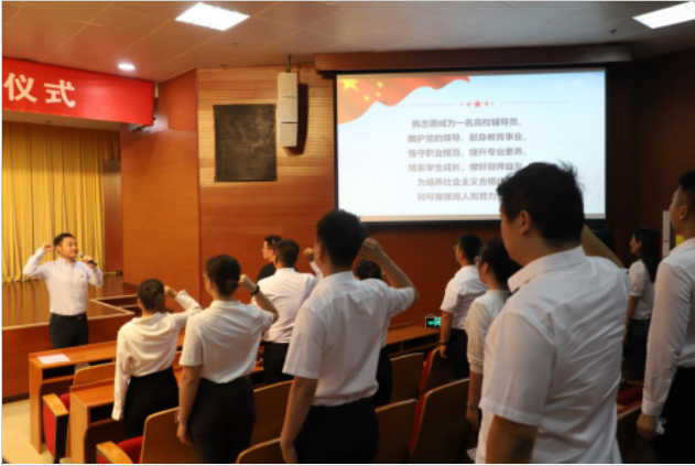 系列培訓結束后,33位新入職輔導員莊嚴宣誓,立志秉承“重德重能 求實求新”的校訓精神,提高政治站位,擁護黨的領導,現身教育事業,情系學生成長,為培養社會主義合格建設者和可靠接班人而努力奮斗。