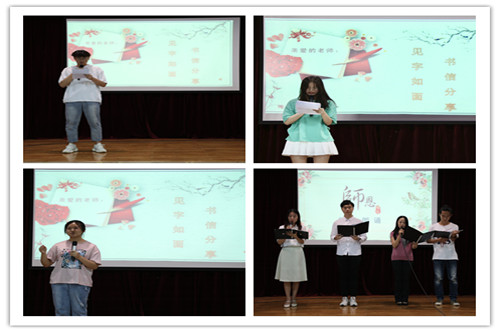 馬瑞等同學分享了與老師之間的故事,真摯感人的話語流露著對老師們的感恩和祝福,也代表廣大學生訴說著對老師的崇敬和愛戴。 教師與學生代表共同的朗誦更是用“一代師表千秋業,巍巍師魂萬世傳!”的鏗鏘字句將整個活動推向了高潮?;顒幼詈?,在場學生也為老師們送上了康乃馨和手寫賀卡來表達莘莘學子最真摯的祝福。