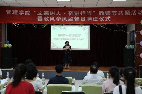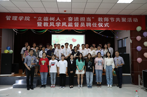 為慶祝第36個教師節,推動教風學風建設年各項工作深入開展,9月9日管理學院舉辦“立德樹人·奮進擔當”教師節師生共建活動以及教風學風監督員聘任儀式。學院黨政領導、教學督導組教師、班主任及學生代表參加本次活動。