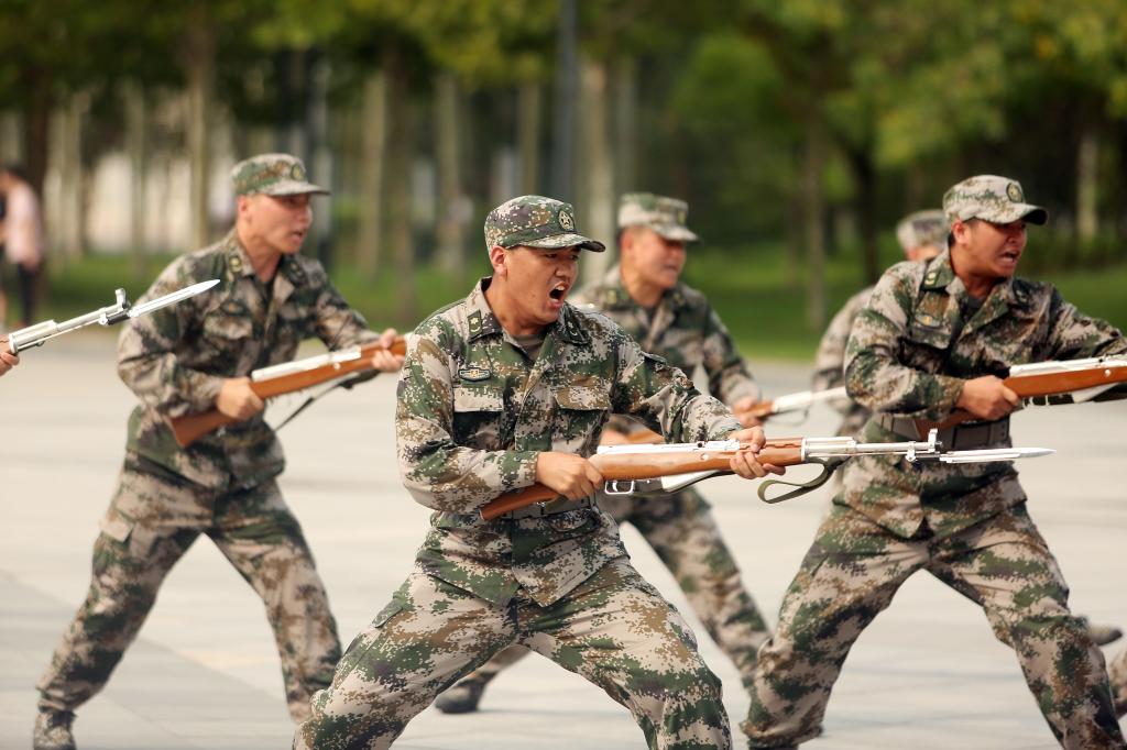 本次活動(dòng)在退役大學(xué)生教官整齊的隊(duì)列示范動(dòng)作中拉開帷幕。40名退役戰(zhàn)士個(gè)個(gè)精神飽滿、意氣風(fēng)發(fā),先后展示了單個(gè)軍人隊(duì)列動(dòng)作、軍體拳、刺殺操等課目,技術(shù)純熟過硬、表演身姿矯健、動(dòng)作整齊劃一,展演環(huán)節(jié)最后全場齊唱的軍歌《一支鋼槍》氣勢恢宏,充分展示了集訓(xùn)成果,重現(xiàn)了軍人風(fēng)采。