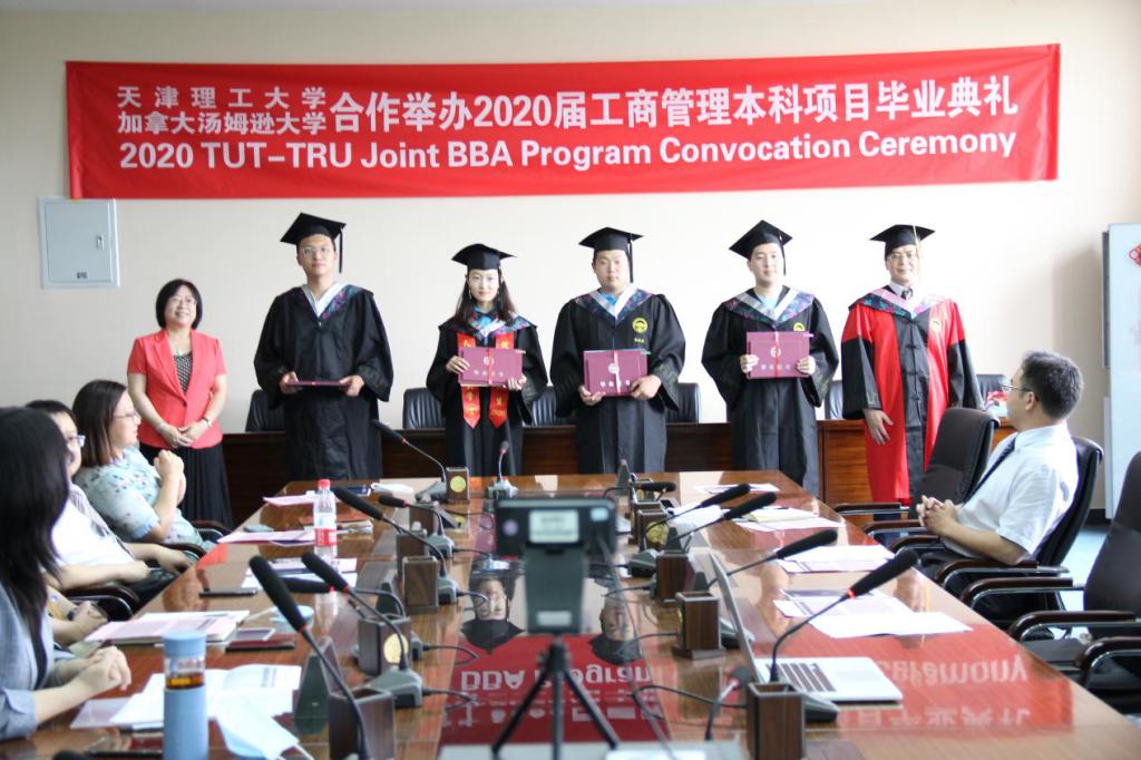 最后,加拿大湯姆遜大學副校長Baihua和天津理工大學管理學院黨委書記張冬梅向圓滿完成學業和獲得學位的畢業生表示祝賀,希望同學們持續發揚“求真務實、開放包容”的精神,懷揣夢想,揚帆遠航。中外雙方表示要繼續勠力同心,共同積極推動國際教育交流與合作,不斷深化中外學科合作,攜手面向未來的機遇與挑戰,實現天津理工大學與加拿大湯姆遜大學中外合作辦學的可持續發展。