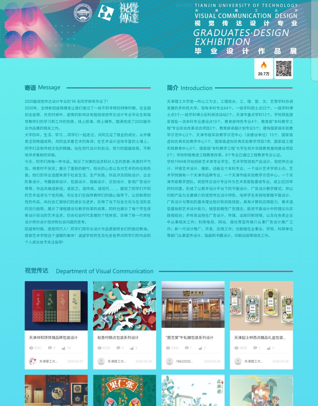 日前,藝術學院2020屆視覺傳達設計專業本科畢業設計展推出了線上展覽。展覽包括“課程思政、植根高校”、“文化傳承、設計創新”和“文化品牌設計服務”三個主題篇章90部畢業設計作品,是視覺傳達設計系全國樣板黨支部牽頭組織將畢業設計與學生價值引領相結合,實現思想和專業方面的雙提升,深入發掘課程的思想政治教育資源,結合當下熱點問題,打造適合藝術人才培養特色的“課程思政”作品展。
