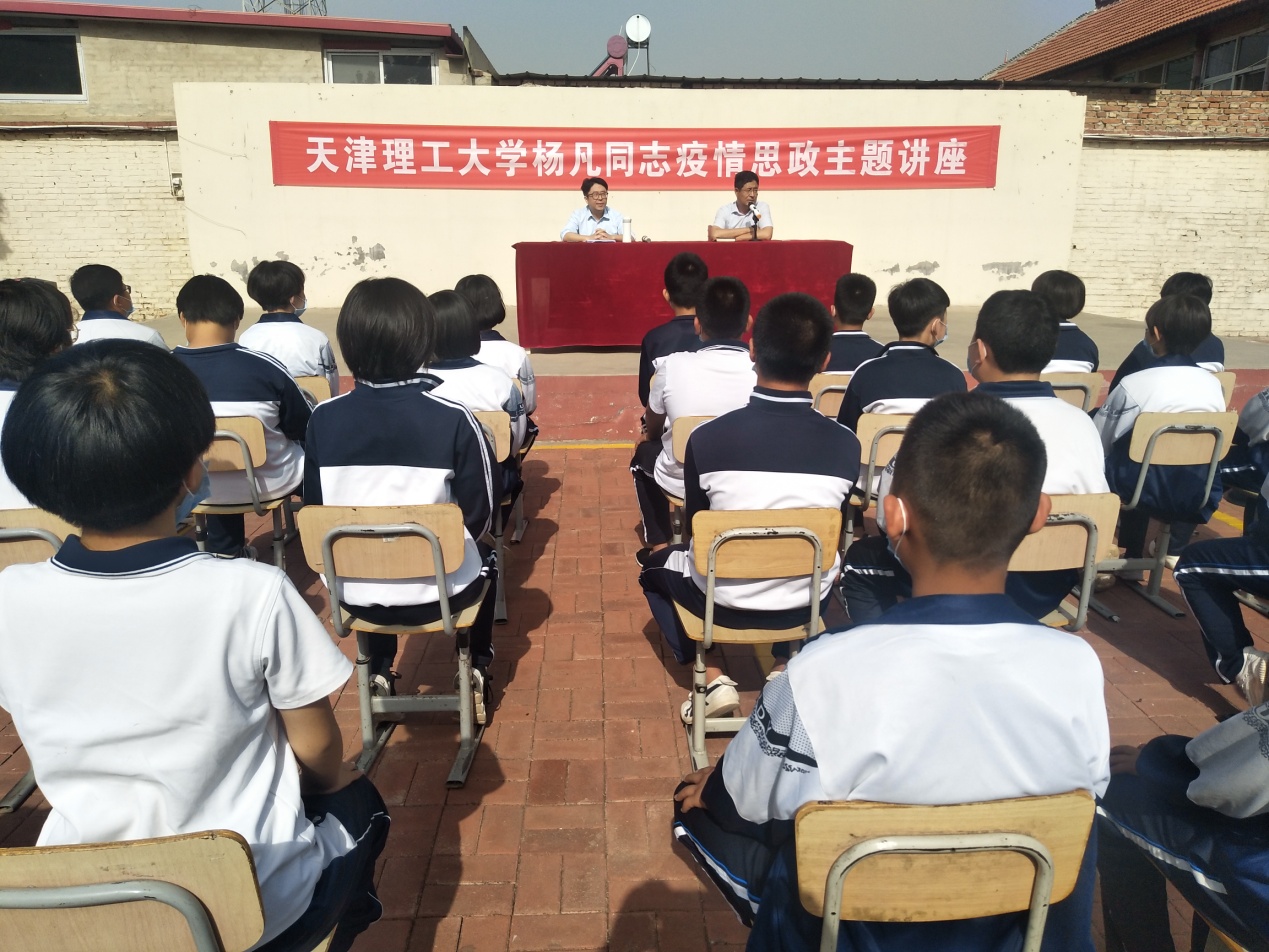 受我校大中小幼思政課一體化建設聯盟單位、天津市薊州區下窩頭鎮初級中學的邀請,6月3日上午,我校馬克思主義學院楊凡赴該校開展抗擊疫情思政主題講座。下窩頭鎮初級中學校長吳紅偉主持,學校師生約300人聆聽講座。