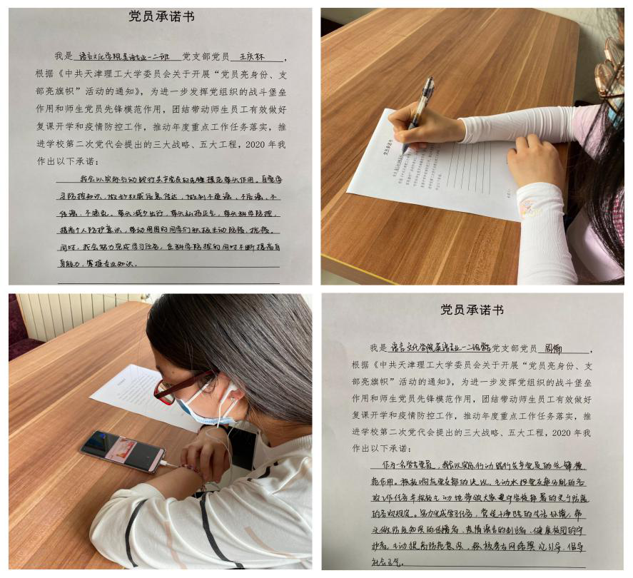 學(xué)生黨支部組織學(xué)生黨員有序開展承諾踐諾活動,大家積極反響,紛紛立足個人實(shí)際,向黨組織做出鄭重承諾。黨員學(xué)生表示要發(fā)揮出年輕人的闖勁,學(xué)會辨析謠言,提升思維能力,起到年輕黨員的模范帶頭作用,以習(xí)近平總書記關(guān)于疫情防控的重要指示精神為思想指引和實(shí)踐堅守。