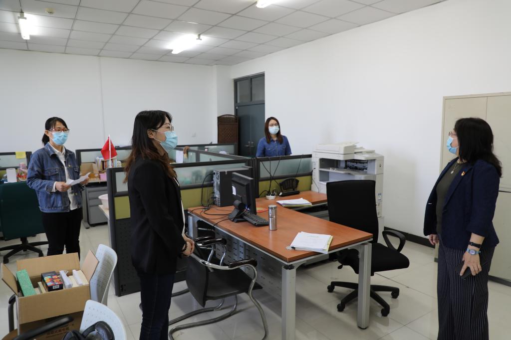 5月11日上午,在管理學院黨委的帶領下,管理學院教師黨員突擊隊深入學院各系辦公室和實驗室,檢查防疫工作部署情況,囑咐通風和消殺的相關事宜,并分發防疫物資。各系導師們也分批分次地組織已返校的畢業班學生進行面對面的畢業論文指導,總體教學秩序井然、防疫部署得當。