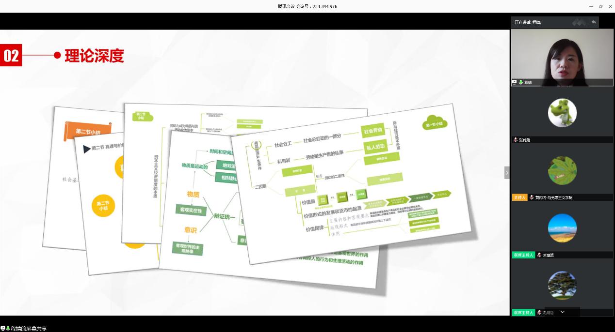 程婧從時政速度、情感溫度和理論深度三個方面總結概括了線上原理課堂的三個“度”,提高學生的政治鑒別力,提升學生的政治情懷,堅定學生的政治信念。