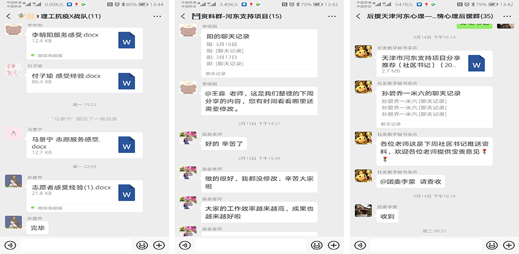 我校社會發展學院社會工作系的師生們認真學習貫徹總書記重要講話精神,自發組成志愿服務團隊,參加了由中國社會工作教育協會(學校與青少年專委會、家庭專委會、醫務專委會)、中央團校等專業機構和高校資源聯合天津市河東團區委組建的“暖心團”抗“疫”服務。