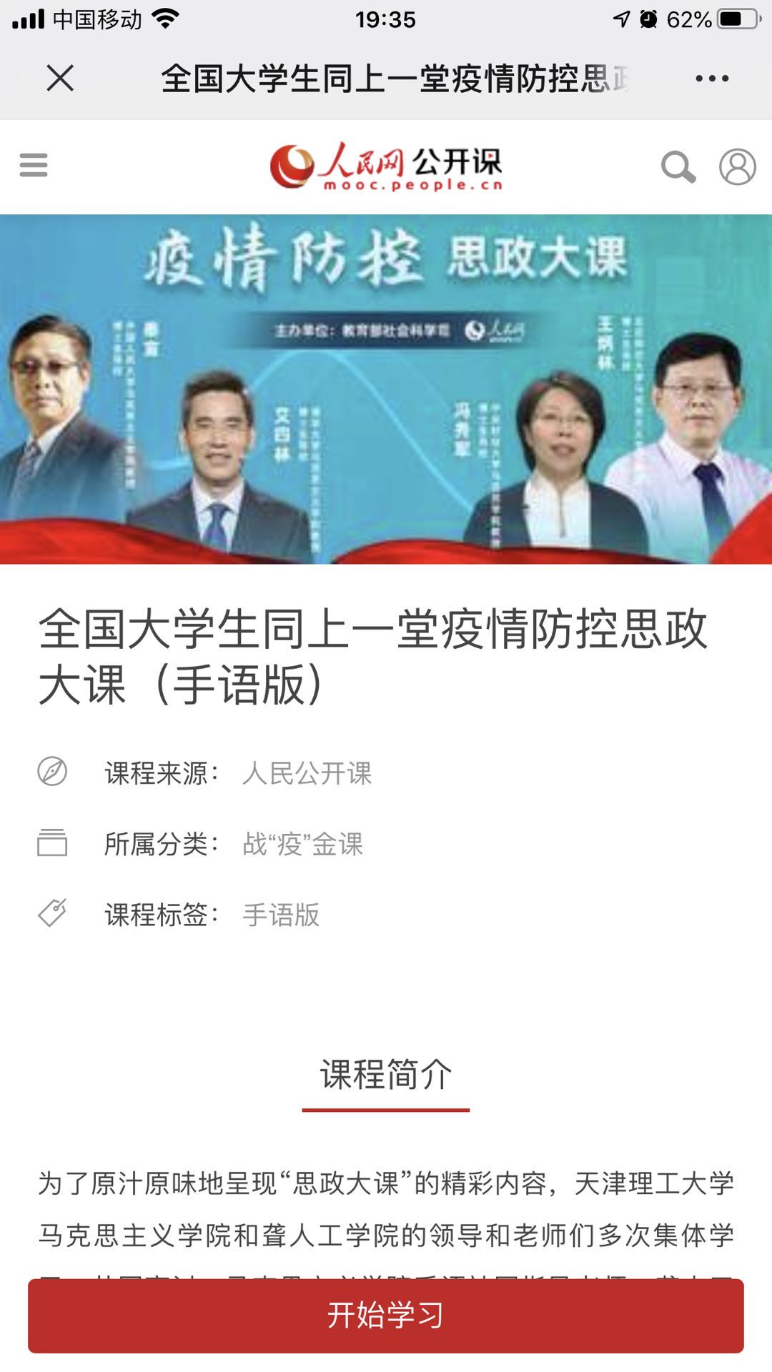 連日來,教育部社科司與人民網(wǎng)聯(lián)合舉辦的“全國大學(xué)生同上一堂疫情防控思政大課”在高校和社會各界中引起了廣泛的共鳴。為了讓全國高校的聽障學(xué)生同步學(xué)習(xí)這堂“思政大課”,人民公開課聯(lián)合天津理工大學(xué)推出了“思政大課”手語版。