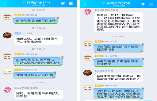 針對需要線下統一報送的材料,科技處工作人員前期對注意事項、填寫重點、可能存在的問題,向教師提供實時在線解答。報送前,提前收取電子版本,對形式進行審查和意見反饋。確保符合要求后,由科技處統一打印膠裝,蓋章報送,減少人員接觸和聚集,降低疫情傳播風險。