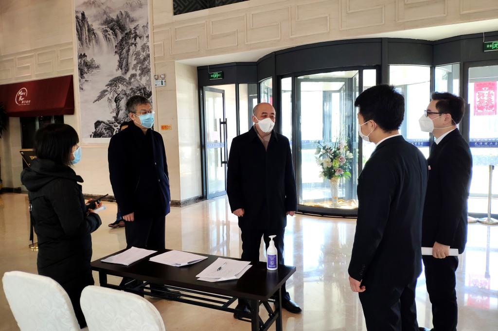 2月18日,校長楊慶新、副校長鄭清春帶領校長辦公室、國際交流處等部門負責同志,來到學校交流中心酒店檢查指導疫情防控工作,代表學校慰問一線留管工作人員和交流中心工作人員,囑咐大家做好本職工作的同時也要做好自身防護。楊慶新在肯定前期工作的基礎上,再次強調不能有一絲松懈,仍需繼續深入做好留學生的疫情防控工作,嚴格落實好值班制度,做好日常健康檢測和登記排查,對留學生的健康狀況、心理狀態進行跟蹤排查,及時了解情況,解決問題,堅持做好交流中心酒店和公共區域的消毒工作,確保留學生的身心健康和校園的穩定和諧。