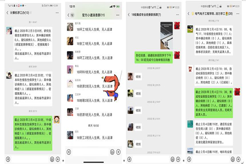 廣大學生是學校最深的牽掛,為準確掌握全校兩萬六千余名學生身體健康狀況,在校黨委帶領下,全體學工隊伍迅速投入戰斗。黨委學工部建立抗擊肺炎疫情信息通報群,各學院構建疫情監控網絡與預警機制,精準掌握所有學生的每日健康狀況和個人行蹤,嚴格落實“日報告,零報告”制度。加強對疫情較嚴重地區學生、有關地區接觸和人員接觸的學生管理,建立健康檔案,緊密聯系、持續跟進;對非津籍留津學生和離津返津學生加強指導,做好人員管理和疫情防范囑托,及時提供幫助;梳理學生假期行蹤,傳遞精準防控指導;針對全體學生建立日常防護網,確保每日健康報告,做到疫情防控“全覆蓋、無死角、不遺漏”。