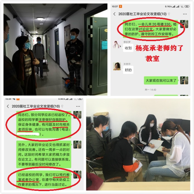 為深入貫徹落實習近平總書記在疫情防控期間的系列重要講話精神,嚴格落實天津市委市政府和教育兩委關于做好2020年春季學期高校畢業年級返校工作的相關文件精神,根據我校復課開學疫情防控工作方案,結合學校“黨員亮身份、支部亮旗幟”活動要求,社會發展學院積極動員教工黨支部在復課開學疫情防控工作中迅速行動、精準施策、帶頭示范,多措并舉助力學生順利畢業,做到黨員不停做,導師不停導,學生不停學。