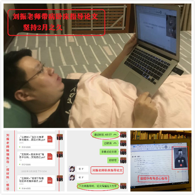 其中有一名特別的“90后”青年黨員教師——劉振,3月起因患嚴重腰椎間盤突出無法久站久坐,兩個月來,劉老師每天堅持在床榻上指導學生修改論文,為六七名學生查材料、提意見、開線上指導會,常常一弄就是幾個小時,從未因個人病痛影響學生論文指導。劉振老師常說“學生見不到我我都對不起學生”,他代表了專業教師們的為師之道,更代表了先進黨員的踐諾風采。