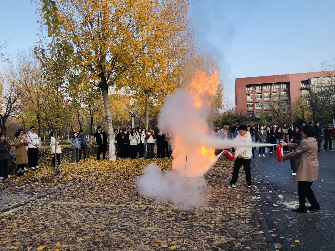隨后,黨委安全工作部教師代表為廣大師生講解了火災(zāi)逃生的基本知識,詳細(xì)介紹了滅火器的種類、結(jié)構(gòu)及使用方法,并在現(xiàn)場示范干粉滅火器的正確操作流程。廣大師生們親自進(jìn)行了實(shí)操練習(xí),熟練地掌握了滅火器的使用技巧。
