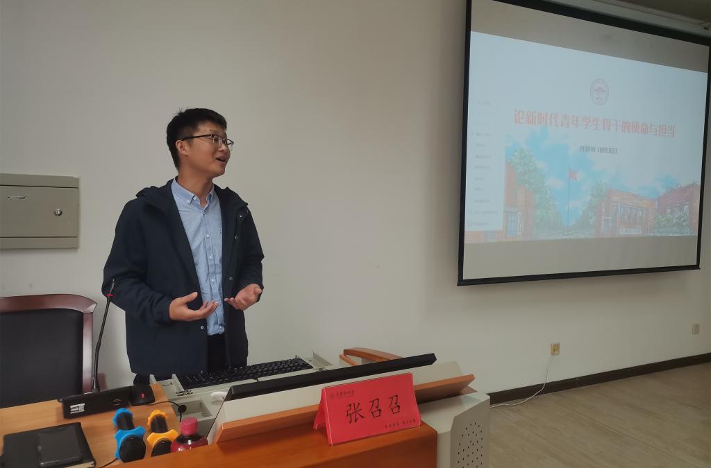 黨委學(xué)生工作部教師張召召以《論新時代青年學(xué)生干部的使命與擔當》為題,從學(xué)生骨干的使命與擔當、認識和作用、應(yīng)具備的素質(zhì)、禮儀常識等四個方面開展專題講座。他為同學(xué)們詳細講解了提升學(xué)生干部能力素養(yǎng)的現(xiàn)實意義、當前學(xué)生骨干現(xiàn)狀及提升路徑。他鼓勵全體學(xué)員要在實踐中不斷加強理論學(xué)習(xí)、提升政治素養(yǎng)、增強業(yè)務(wù)能力,形成比學(xué)趕超的良好氛圍,為學(xué)校發(fā)展貢獻青春力量。