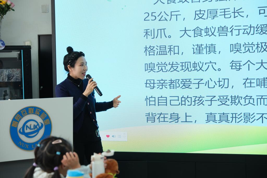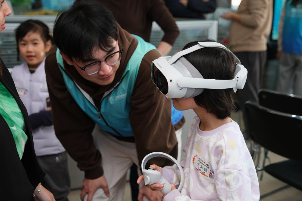 智網(wǎng)互聯(lián)實(shí)驗(yàn)室的中外研究生同學(xué)為小朋友們講解了“數(shù)字孿生”的概念和中拉友好的壁畫,并指導(dǎo)大家通過VR體驗(yàn)、互動(dòng)游戲等環(huán)節(jié)感受生物多樣性與數(shù)字科技的有機(jī)融合。
