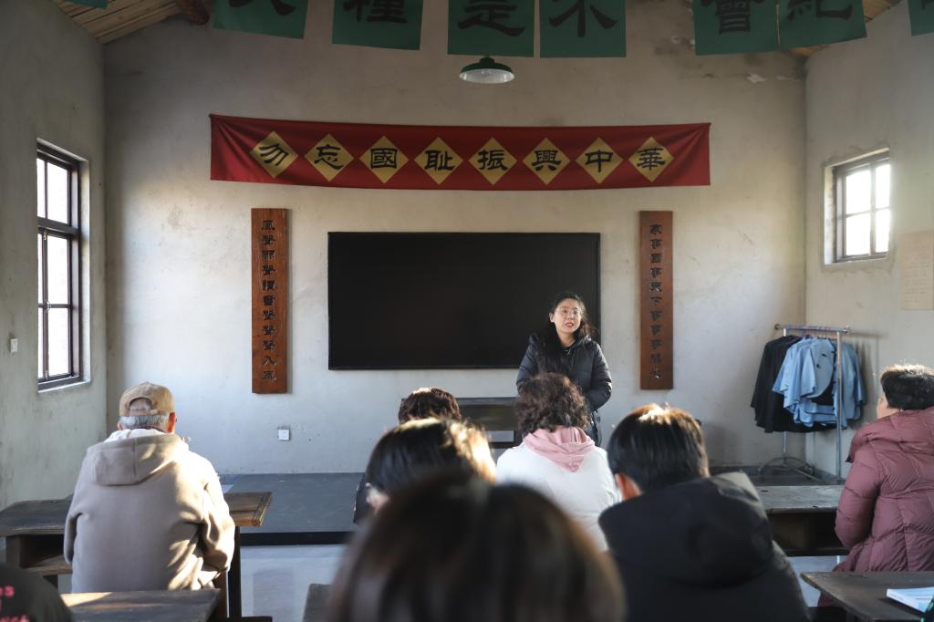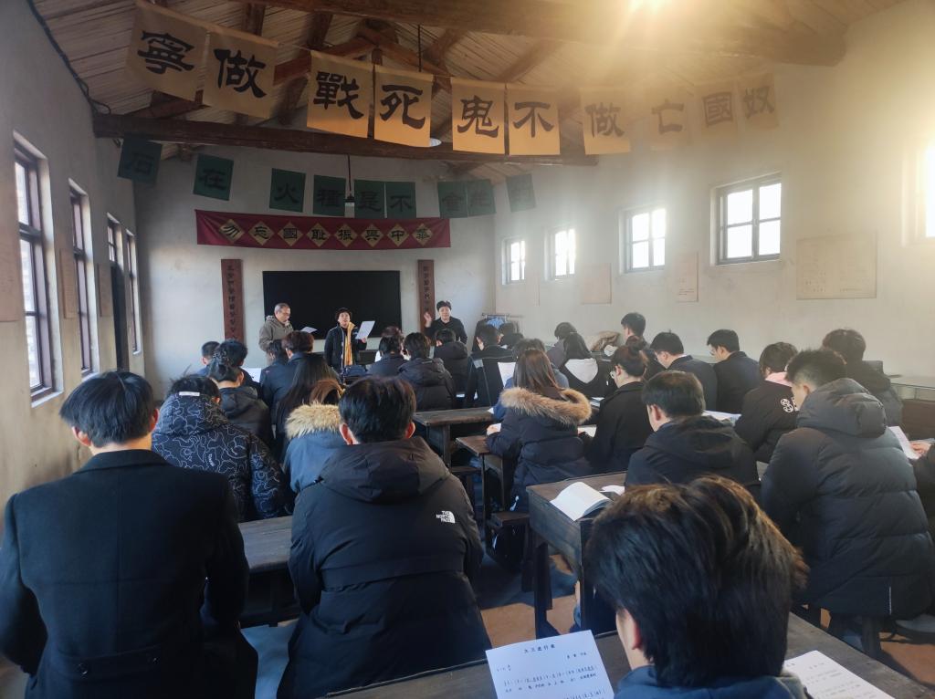 在王蘭莊農(nóng)民學(xué)校里,學(xué)院退休老黨員們帶領(lǐng)大家學(xué)唱了《大刀進行曲》《畢業(yè)歌》等歌曲。隨著歌聲的響起,課堂氛圍達到了高潮,師生們在音樂與歷史的交融中感悟青春與責(zé)任。