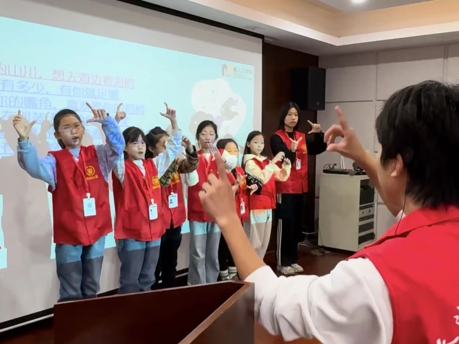 在第33個國際殘疾日之際,聾人工學院赴市社會組織委員會面向小志愿者們開設手語課堂。