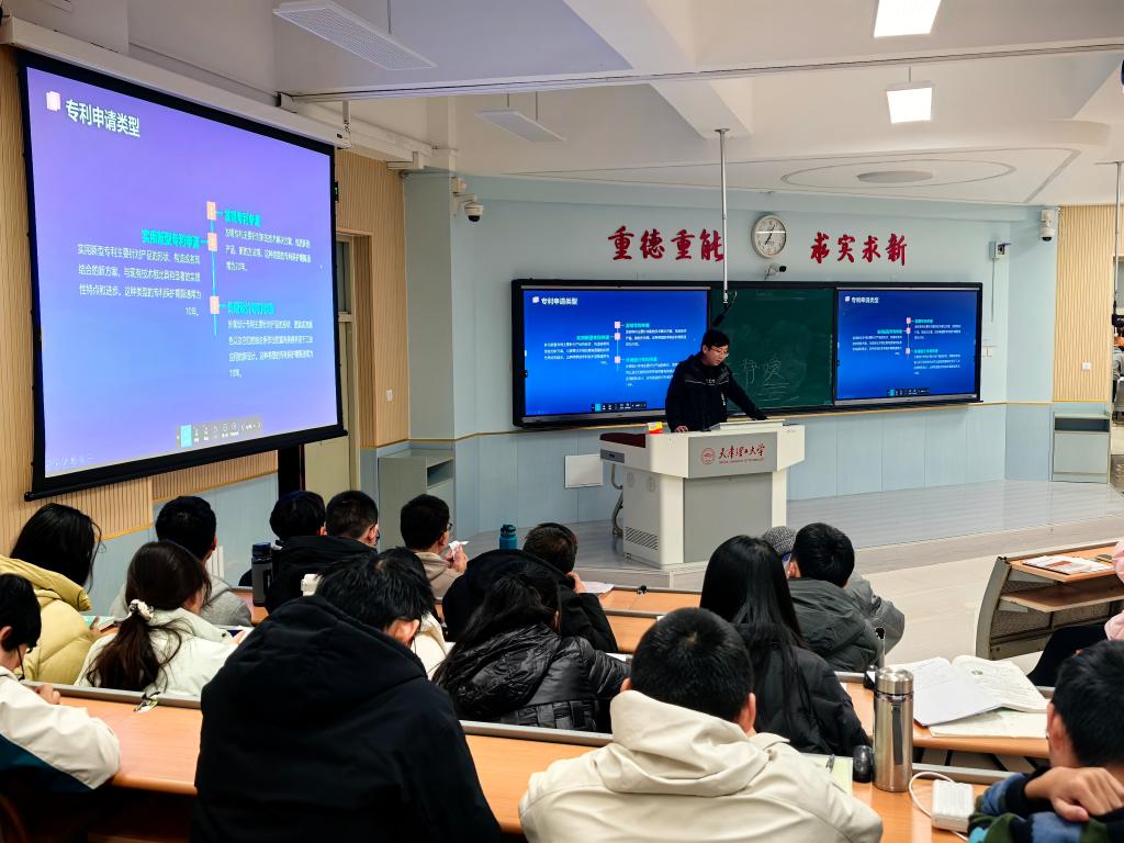 專業(yè)教師以專利的類型為切入,圍繞“發(fā)明專利申請”“實(shí)用新型專利”“外觀設(shè)計(jì)專利申請”等方面進(jìn)行系統(tǒng)的講解,就論文選題、論文撰寫、論文發(fā)表三方面進(jìn)行了普及,并為同學(xué)們帶來了一場具有專業(yè)特色的普法講座。他希望同學(xué)們在創(chuàng)造科研、享受科技成果的同時,更要注重專利等知識產(chǎn)權(quán)的保護(hù)。