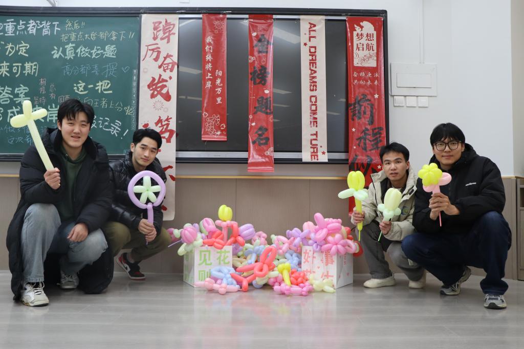 會(huì)上,學(xué)院黨委主要負(fù)責(zé)同志代表學(xué)院向全體考研學(xué)生表示關(guān)心,鼓勵(lì)同學(xué)們?cè)谧詈箅A段能夠咬牙堅(jiān)持,錨定目標(biāo),以最佳狀態(tài)奔赴戰(zhàn)場(chǎng)。隨后,教師們?yōu)榭佳袑W(xué)生系上“金榜題名”腕帶,發(fā)放慰問禮物,并預(yù)祝同學(xué)們一戰(zhàn)成“碩”。