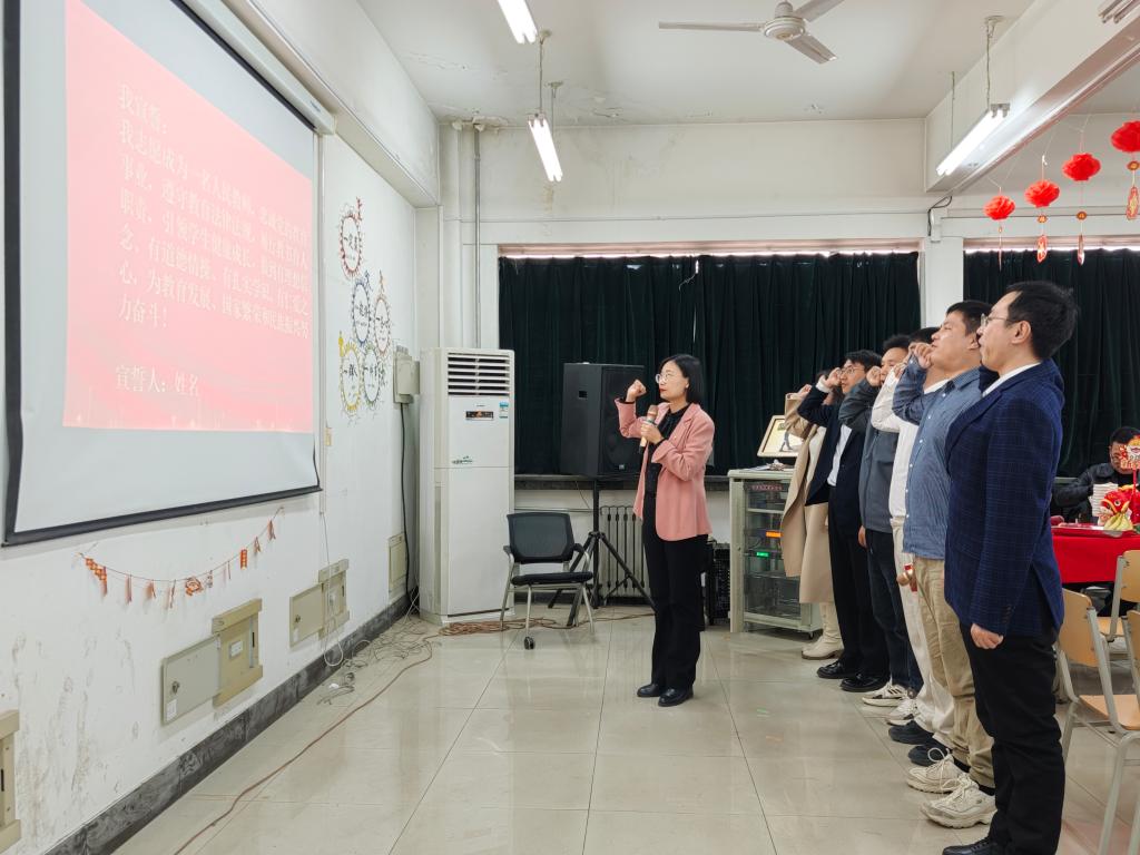 學院主要負責人總結了2024年學院在黨建引領、教學改革、科學研究、學科建設和國際交流等方面獲得的豐碩成果,并對全體教師的辛勤付出表示衷心感謝。學院黨委相關負責同志帶領新入職教師進行莊嚴宣誓,錚錚誓言彰顯了青年教師的奮進擔當。