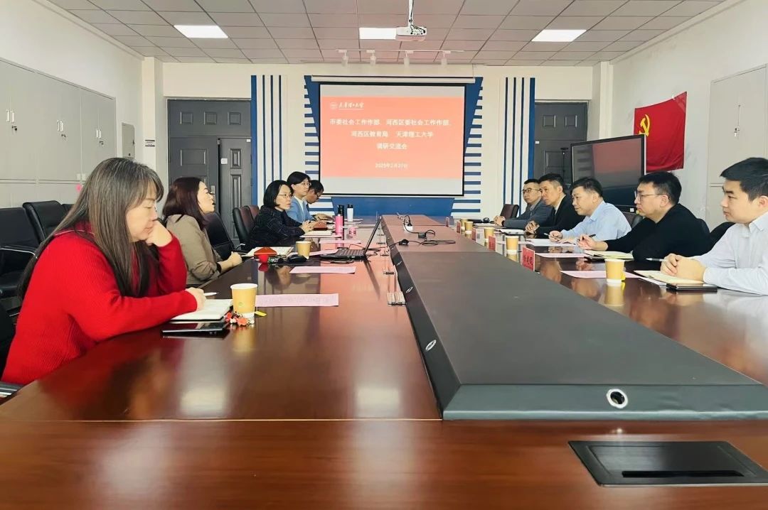 2月27日,天津市委社工部、河西區(qū)委社會工作部、河西區(qū)教育局相關(guān)領(lǐng)導(dǎo)到社會發(fā)展學(xué)院調(diào)研交流。社會發(fā)展學(xué)院黨政主要負(fù)責(zé)同志及部分教師代表參會。