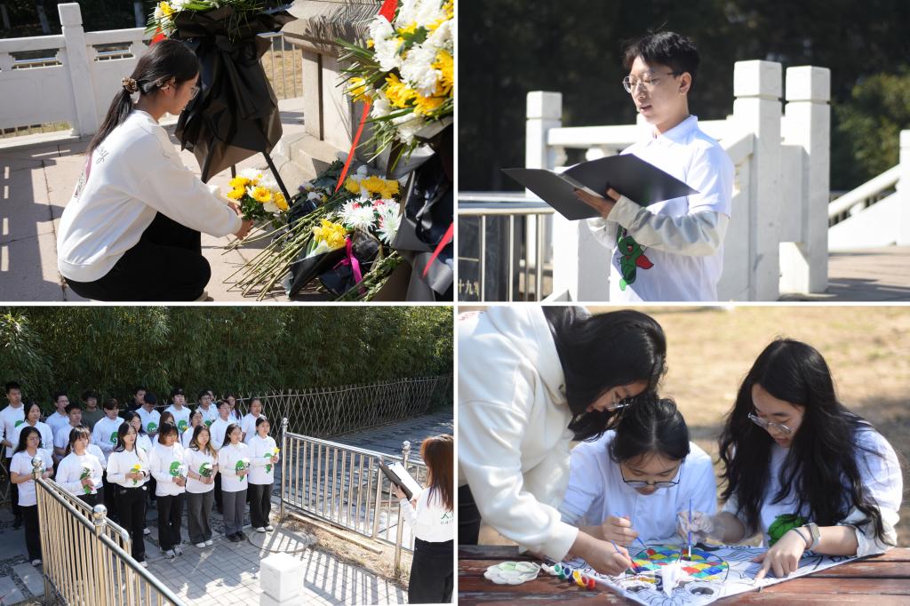 在巍然矗立的解放戰爭英雄紀念碑前,30余名學生列隊肅立。學生們手持黃白菊緩步獻花,用春日鮮花寄托對革命先烈的無限追思。學生團員代表在紀念碑前生動講述革命先輩浴血奮戰的英勇事跡,勉勵大家珍惜當下,用智慧和才干去完成新時代賦予青年的責任與使命。大家集體誦讀詩歌《清明的雨》時,以鏗鏘之聲與先烈展開時空對話,深切感悟“捐軀赴國難,視死忽如歸”的革命情懷。